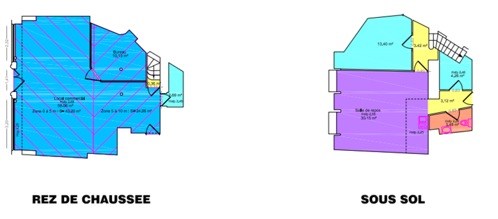 Le local développe une surface totale d’environ 130 m², répartie sur deux niveaux, avec 72 m² en rez-de-chaussée et 58 m² en sous-sol, offrant une configuration fonctionnelle et adaptée à de nombreuses activités commerciales ou de services.